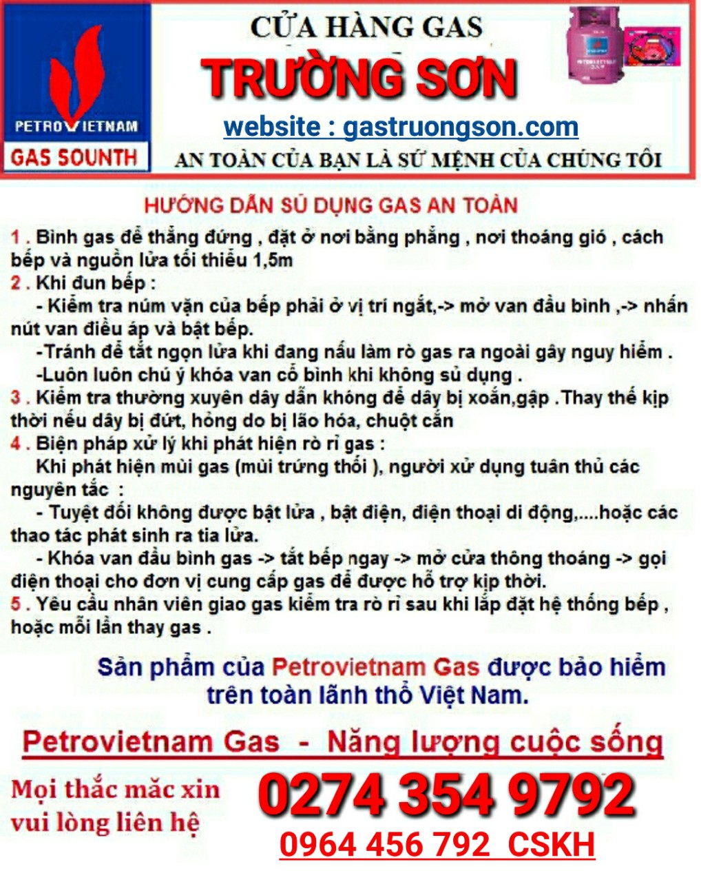 ĐẠI LÝ GAS BẾP GAS TRƯỜNG SƠN
